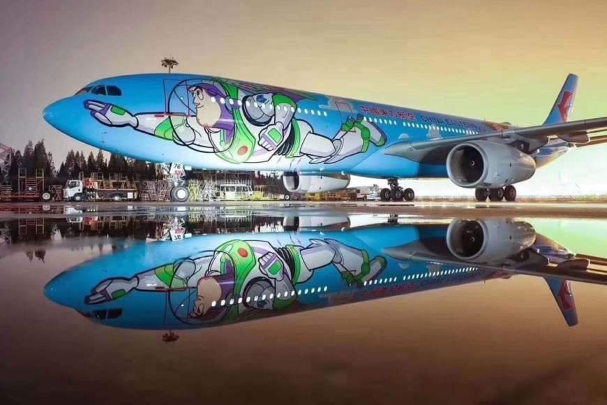 Another cartoon-inspired airplane. This one has Buzz Lightyear from “Toy Story” franchise on itself as it is a product of collaboration between China Eastern and “Toy Story” franchise. The cartoon character thinks that he can fly in the movie, but actually he can’t. Also, the plane has written “This is falling, with style…” on itself. It is pretty funny, isn’t it?