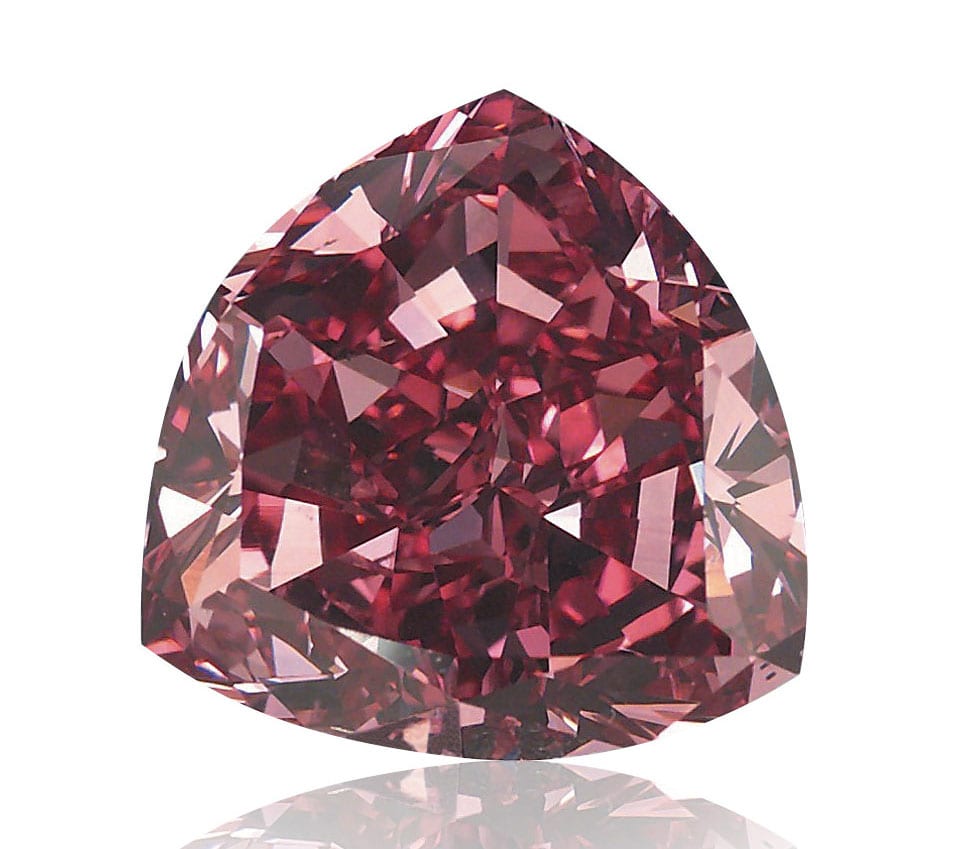 While it might not come with a complicated history or royal background, the Moussaieff is the world’s largest red diamond, according to the Gemological Institute of America. Discovered relatively recently (in the 1990s) by a Brazilian farmer in a river in the Alto Paranaiba region, the impressive gem weighs 13.9 carats (2.78 g) and it’s shaped like a triangle.