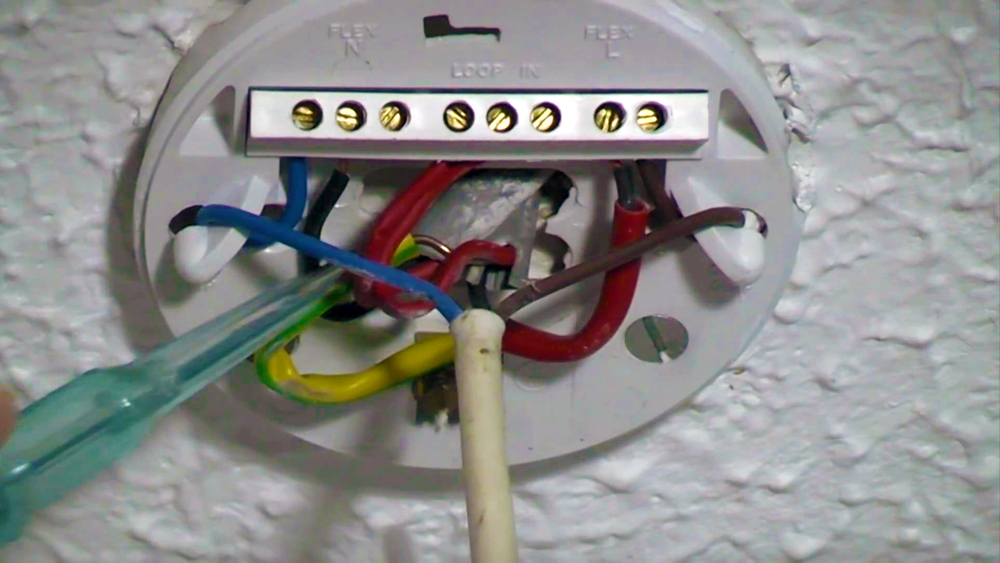 If you have a class 1 light fitting, a terminal will be attached to the light fitting for you to attach the earth wire. It’s good practice to slide a piece of earth sheathing over the exposed wire.