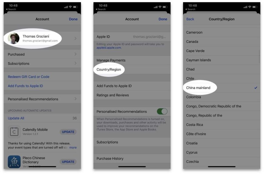 Step 2: Tap the account, select the “Country/Region” section. You then choose “Change Country or Region”.