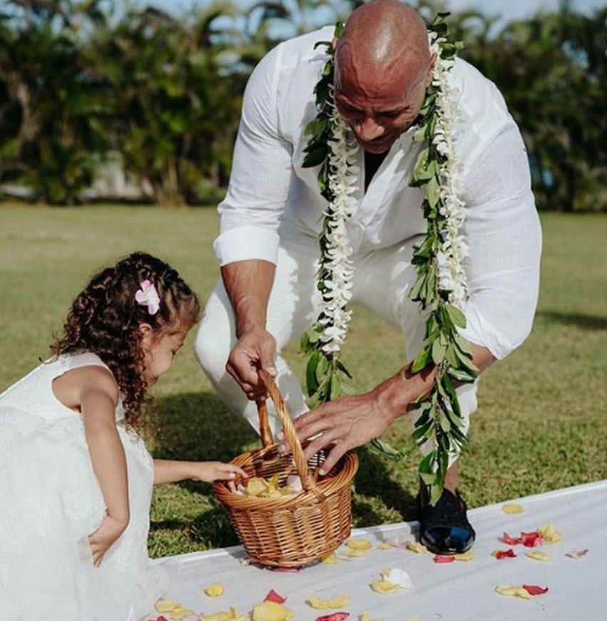 Nevertheless, it looks like their daughters stole the show at the wedding. There was a picture of Jasmine practicing tossing flowers for her big role as a flower girl. Soon after the wedding, Dwayne shared a post with her which he captioned, “Wedding day flower girl 🌺 is a big responsibility and one that Jazzy took very serious.