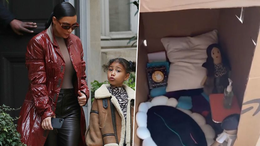 Kim Kardashian West and Kanye West’s 6-year-old daughter made a unique dollhouse out of a cardboard box to make a “quarantined” home for two of her plush dolls, which represent her parents.