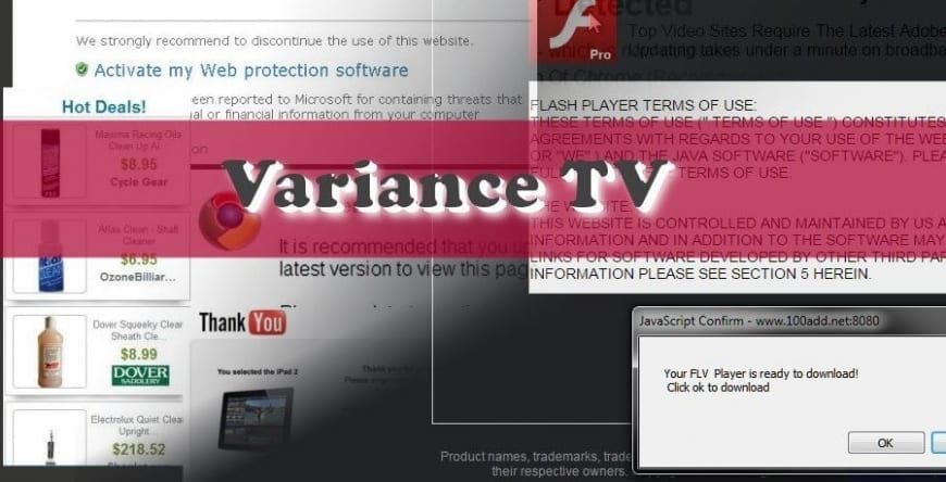 Variance TV is certainly something that you do not want of your system. Due to its intrusive nature, it is probably best classified as an Adware or PUP (Potentially Unwanted Programs). Once this unwanted adware is installed on any system, it will go right to work acting just like any other adware. The above-mentioned site hxxp://variance.tv/ is a legitimate website that host videos, but it also puts users computers at risk because they use inferior marketing strategies. On this site, there are a variety of Variance TV ads that any user can encounter at any time. These ads will be present in pop-ups, texts, and other pieces of advertisement. Any users need to know that click on such things could infect their system with malware and take you to shady websites.