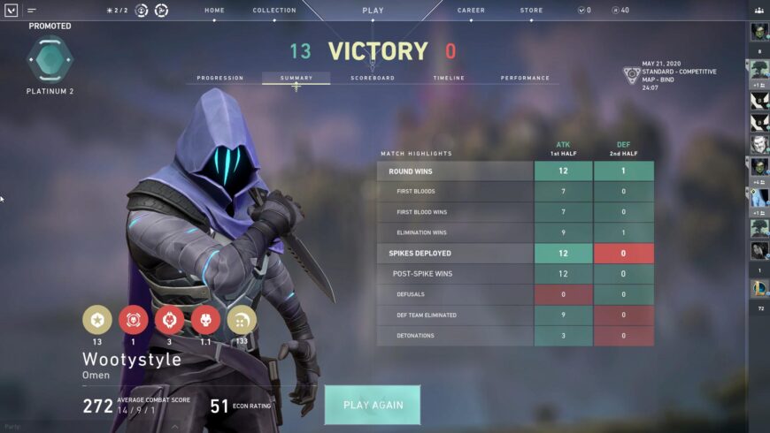 A good indication of your Valorant matchmaking rank is your actual rank relative to the players that you’re queuing against with. For example, if you’re a diamond player and you’re queuing up with and against immortal players, your Valorant MMR is probably higher than your actual rank. With a higher Valorant MMR, you’ll have an easier time ranking up as you’re playing against higher ranked competition. In contrast, players with a lower Valorant MMR may be diamond rank, playing against platinum players. To check for your approximate Valorant Matchmaking check for your relative rank against your opponents. If your rank is above those you’re playing with you likely have a low matchmaking rank, if your rank is lower than those you’re playing with you most probably have a higher matchmaking rank.