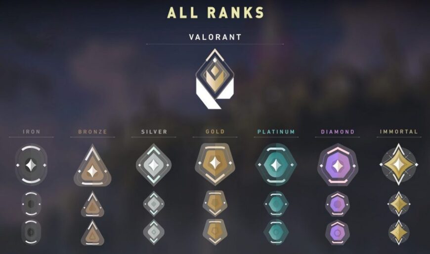 Valorant MMR or Matchmaking Rank is the determining factor for your in-game rank. The Valorant in-game ranks range from Iron to Radiant as follows: