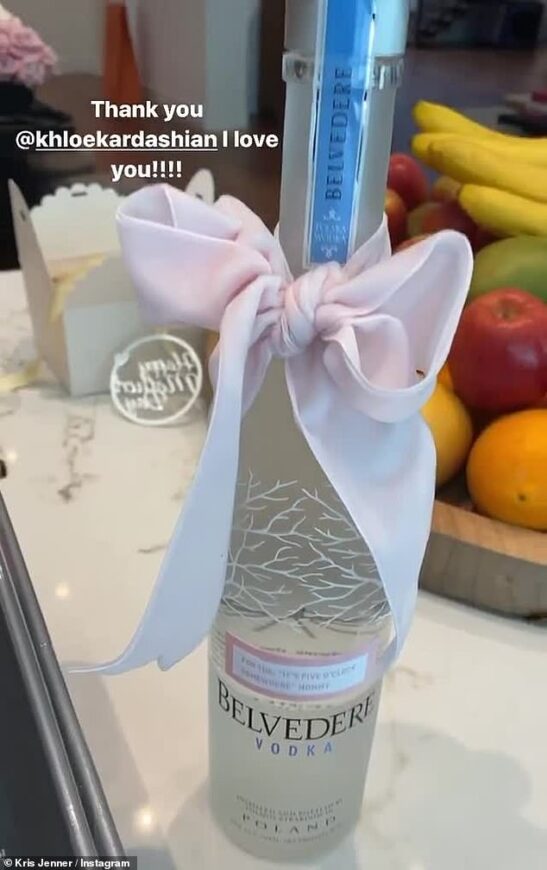 In a series of videos on her Instagram Story, Jenner started by showing a bottle of Belvedere Vodka, writing: “I’m opening Khloe’s Mother’s Day gift and we’re off to a good start.”
