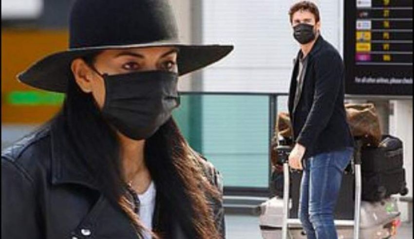 The singer, 41, and the former rugby player, 34, were seen outside Gatwick Airport with their face masks on amid the global pandemic.