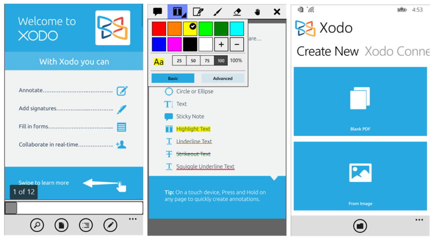 Xodo is a mobile app that is available for both Android and iOS. It offers quite a few PDF editing features, such as adding images, text boxes, shapes, signatures, and so on. Xodo even lets you collaborate on the same online document with your friends who are using the app by inviting them via email or a link. The only major drawback is that Xodo doesn’t allow editing of the existing text and images.