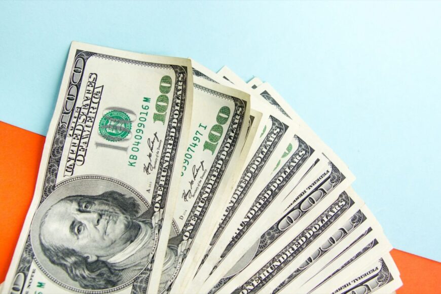 Woman's hand holding a dollar bills