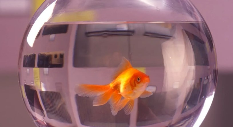The photo shows police officers and a man, together with his fish in a bowl. The man was punished because he had violated the government’s orders.