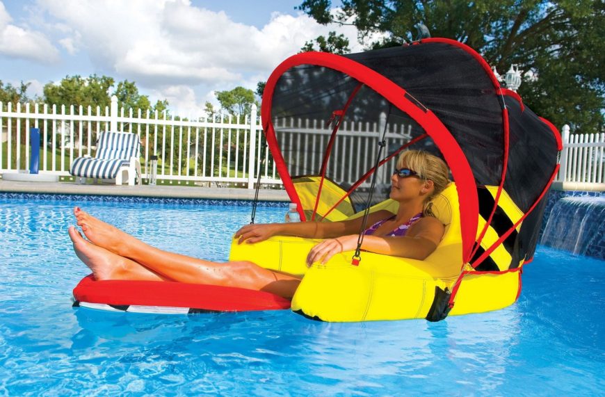 Naturally, you should always apply sun protection on your skin, but to further protect yourself from the scary UV sun rays, you could get an umbrella. What’s even better is that you can get a floating one, so wherever you are in the pool you will have a transportable umbrella with you. This way you ensure that you will never get a sunburn.